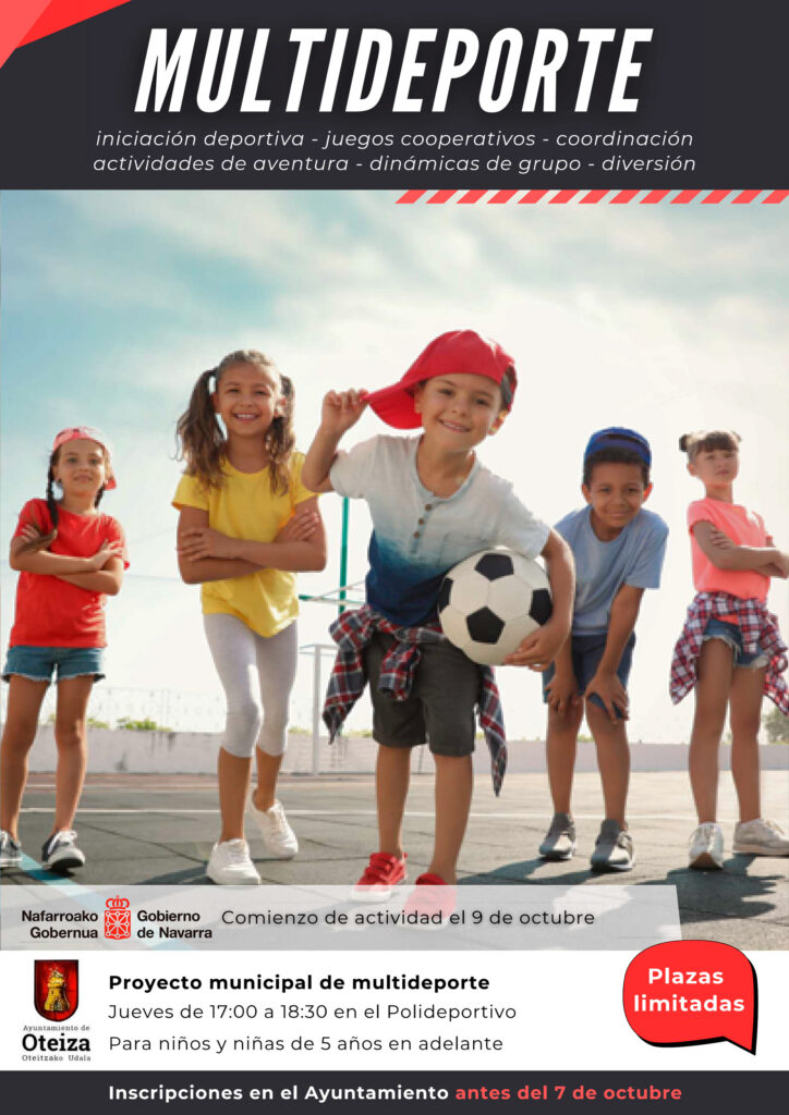 MULTIDEPORTE 18/11/202518/11/2025 Proyecto municipal de multideporte Jueves de 17:00 a 18:30 en el Polideportivo Para niños y niñas de 5 años en adelante Kirol anitzeko udal proiktuaOstegunetan 17:0üetatik 18:30etara Kiroldegian5-10 urte bitarteko haurrentzat(erroldatutakoek lehentasuna)